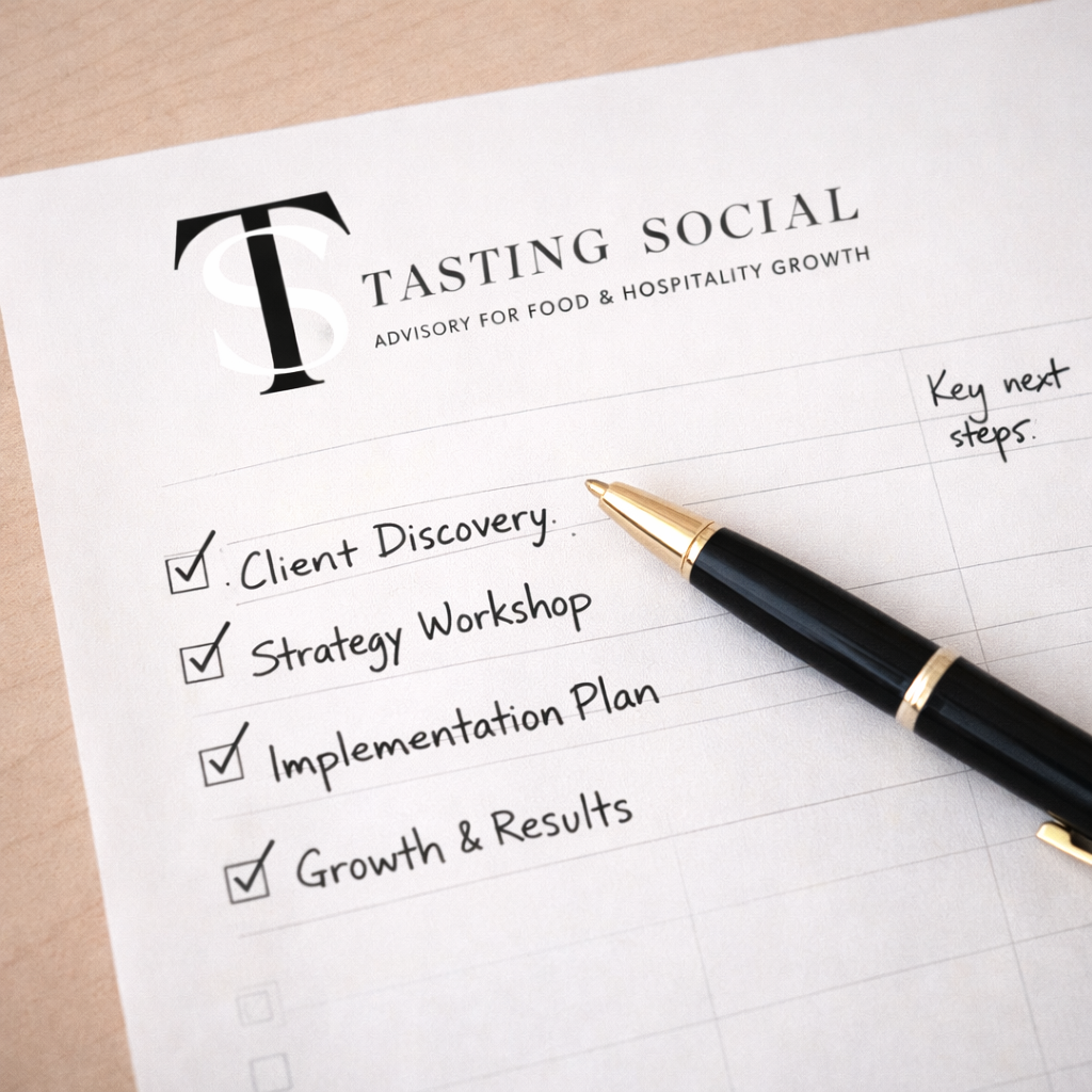 The Tasting Social Growth Advisory is a 1:1 strategic partnership focused on: